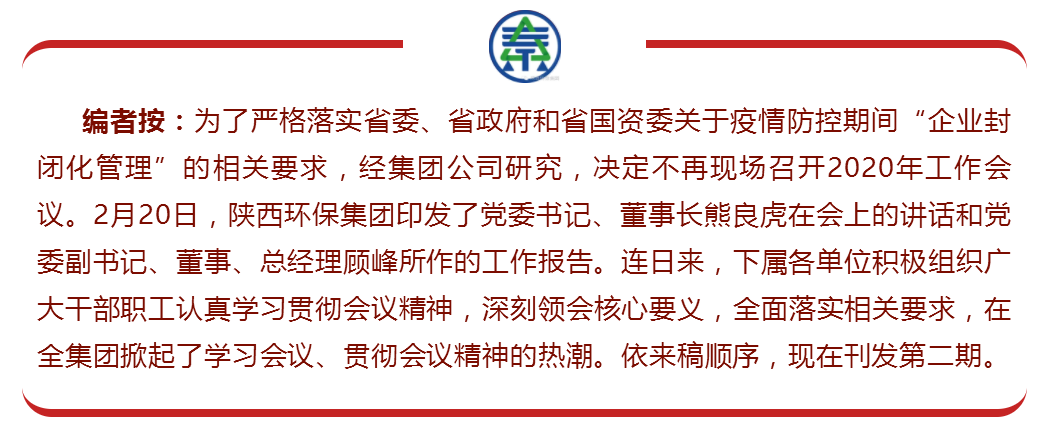 會議要求,一要原原本本學。各部門要通過多種形式深入學習、討論會議精神,深刻理解講話內涵,準確把握講話核心要義,形成貫徹落實的自覺性。二是要整體系統學。將講話與報告結合起來,做到全面系統領會、吃透精神實質。三要聯系實際學。根據講話與報告內容,緊密聯系思想實際、工作實際和作風實際,真正用其武裝頭腦、指導實踐、推動工作。四要提高政治站位,強化責任擔當。公司各部門負責人和廣大黨員干部要切實提高政治站位,把政治站位和大局意識體現到具體行動上來,認真謀劃部署全年各項工作,統籌安排、落實責任、主動作為,推動公司生產經營有序開展。五要提升公司內部管控水平。形成行之有效的管理措施,努力做好精神文明、企業文化建設等各項工作,完善公司今年工作計劃,切實為公司高質量發展提供制度保障。六要加強統籌協調,攻堅克難主動作為。各部門要壓實復工復產主體責任,不能有緩一緩、等一等思想,堅持一手抓疫情防控、一手抓復工復產,增強鑒別市場的敏銳性,緊盯項目、緊盯時機,多渠道主動對接,想方設法開拓市場,努力把疫情帶來的影響降到最低。(左星星 王雅)