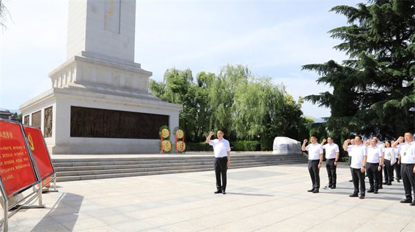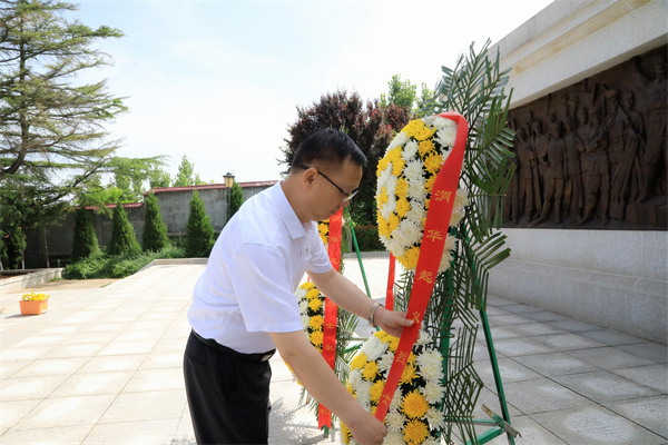 蒼松肅立,翠柏靜哀,以中共陜西環保產業集團有限責任公司委員會、陜西環保產業集團有限責任公司名義敬獻的兩個花籃一字排開,寄托著對革命先烈的深切緬懷和崇高敬意。集團公司黨委書記郝軍亮緩步上前,仔細整理花籃緞帶。現場黨員面向紀念碑鞠躬致敬,集體繞行瞻仰渭華起義烈士紀念碑。隨后,大家走進渭華起義陳列大廳,跟隨講解員的講解,從渭華起義爆發的歷史背景、選址原因、準備工作、主要經過等方面追憶崢嶸歲月。在一張張照片、一份份資料、一件件實物前,大家不時駐足觀看、交流討論,強烈感受革命先烈們為了民族獨立、人民解放拋頭顱、灑熱血的英雄氣概。