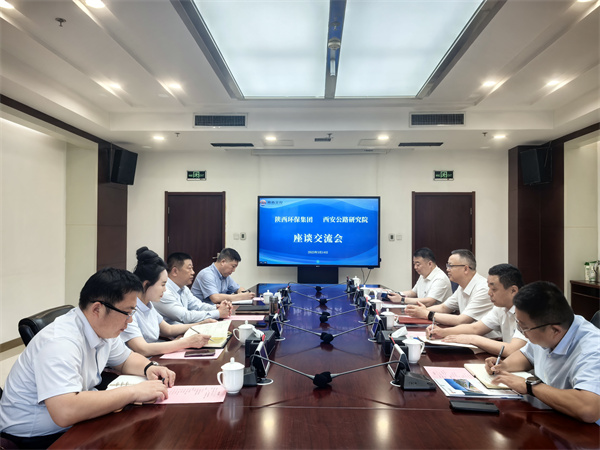 陜西環保集團黨委副書記劉青剛、副總經理張鵬,陜西交控集團西安公路研究院總經理姬建崗、總經理助理劉靜,雙方總部有關部門及權屬企業參加座談。(郝策)