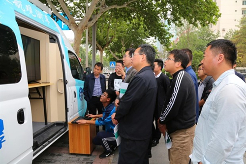 觀摩會上,中圣公司專家組對“一區一策”精準治霾工作方式、技術手段、運行機制及防治效果等情況進行了介紹,現場展示了科學治霾的工作流程與相關資料,并對觀摩團提出的問題進行了交流探討。隨后,在專家團隊的引導下,現場演示了生態環境立體走航觀測車實地監測情況。