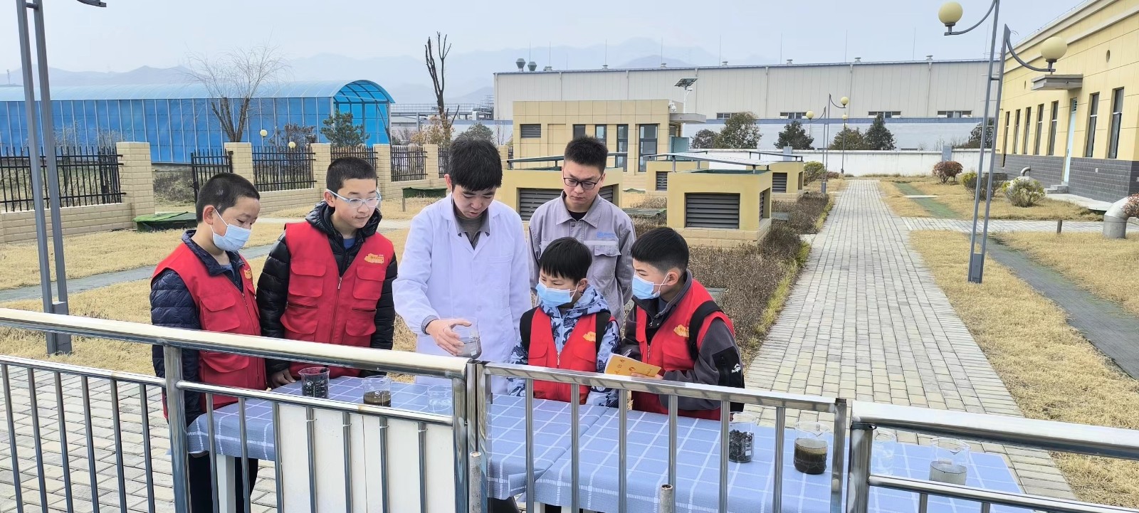 在現場工作人員的帶領下,“小記者們”實地參觀了格柵、生化池、MBR膜池、紫外消毒、出水口等污水處理設備設施,現場工作人員在中控室對照工藝流程及污水處理設備細致講解了污水處理的全過程,分階段介紹了每個污水處理環節的作用和處理效果,使“小記者們”更加直觀的認識整個污水處理過程。
